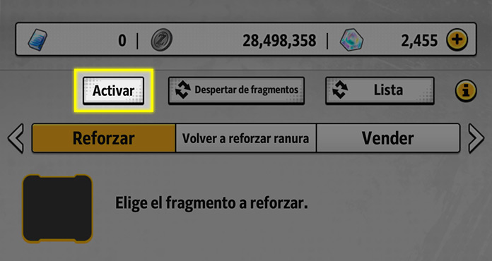 *Los fragmentos con que has equipado a personajes se desequiparán.